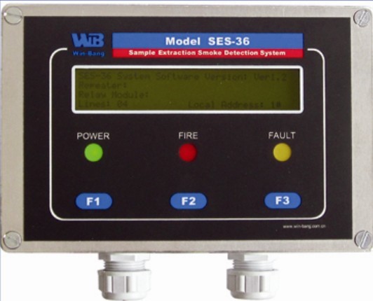 本系統(tǒng)用于貨艙的煙霧監(jiān)測,當系統(tǒng)啟動后,風機從貨艙中抽吸氣體樣品,氣體樣品通過管路流經粉塵過濾器,再到探測箱,探測箱內各獨立探頭檢測氣體樣品中煙霧濃度,并將分析結果反饋到控制器,當被監(jiān)控區(qū)域的煙霧濃度達到控制器報警閥門值時,系統(tǒng)會發(fā)出聲光報警和文字提示;同時系統(tǒng)有自身故障診斷的能力,當系統(tǒng)發(fā)生故障時,系統(tǒng)會出現(xiàn)聲光報警和文字提示。(12路SES-36貨艙抽煙探測系統(tǒng)的常見配置)